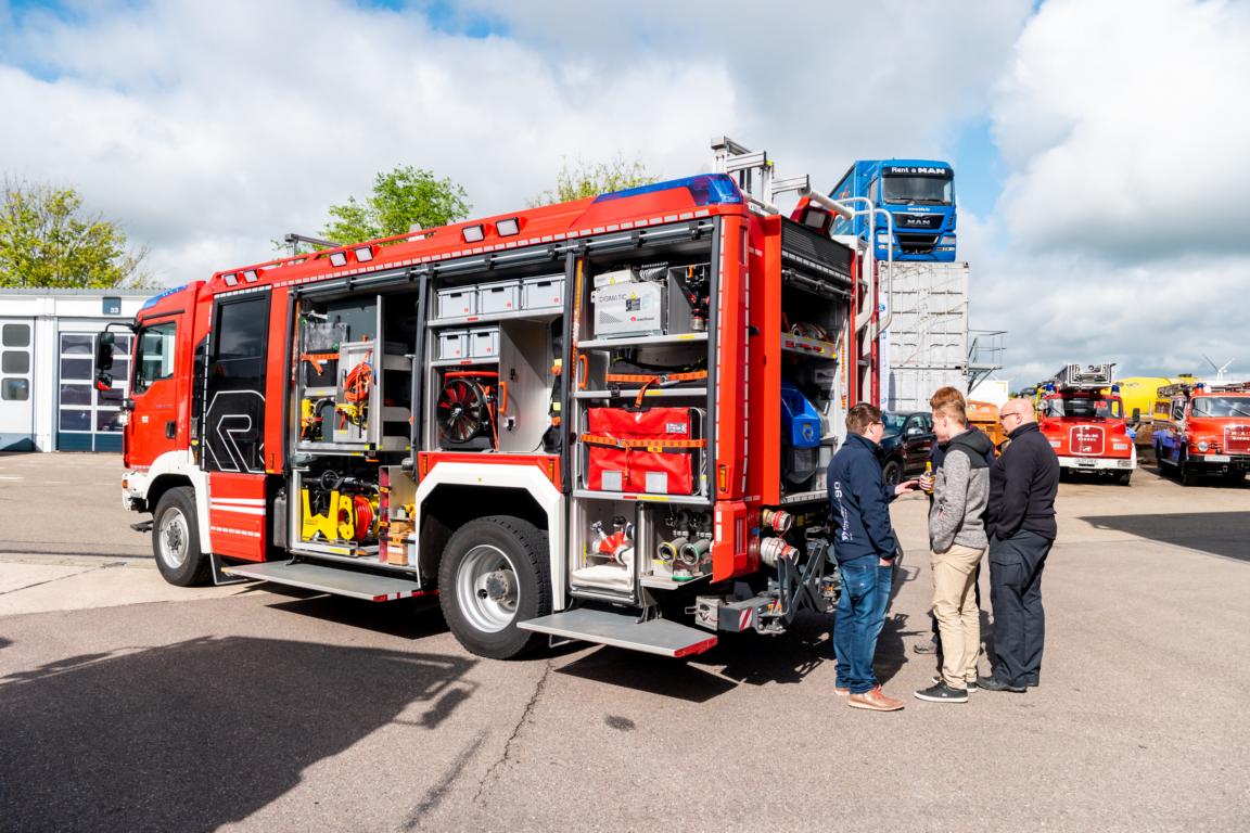 Die Bilder glichen sich: Wie im vergangenen Jahr, als es erstmals ein Heldentreffen gab, standen die Feuerwehrfahrzeuge Stoßstange an Stoßstange. Jedes der Fahrzeuge wurde in der Werkstatt von Stegmaier Nutzfahrzeuge auf typische Mängel geprüft. Die Kfz-Mechatroniker und Meister schauten sich die Beleuchtung, die Bereifung und die Bremsanlage an. Mit 15 Feuerwehrkameraden und zwei Einsatzfahrzeugen war beispielsweise die Freiwillige Feuerwehr Wallhausen dabei. Die kostenlose Überprüfung nahmen die Kameraden gerne an. Sie bekamen zudem noch einen Einblick in die Werkstattarbeit. Auch das Weißwurstfrühstück kam sehr gut an.